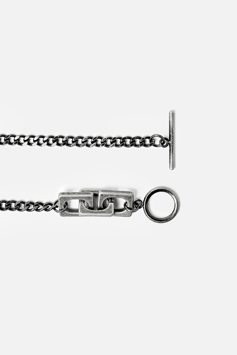 The Bex Chain Necklace is the perfect balance of industrial and minimal, featuring a geometric link detail, a sleek curb chain and lariat closure
